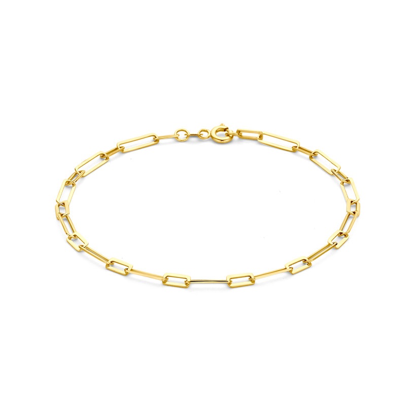 14k Geelgouden armband met een schakelbreedte van 3mm en een draaglengte van 19cm.