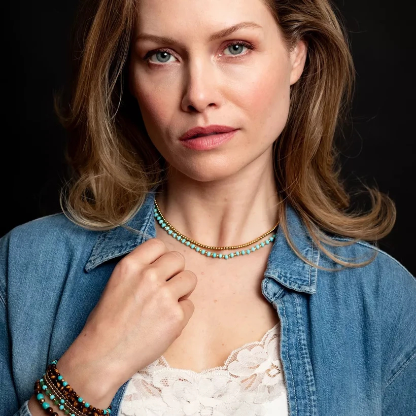 Rebel & Rose Necklace Mix Turquoise Gold - 4mm