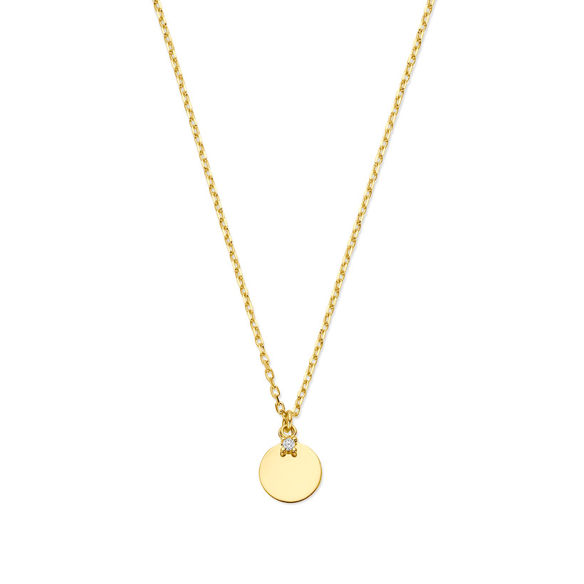 14k collier uitgevoerd met een rondje en zirkonia. Het collier heeft draaglengte van 40-42-44cm en een schakelbreedte van 1.1mm.