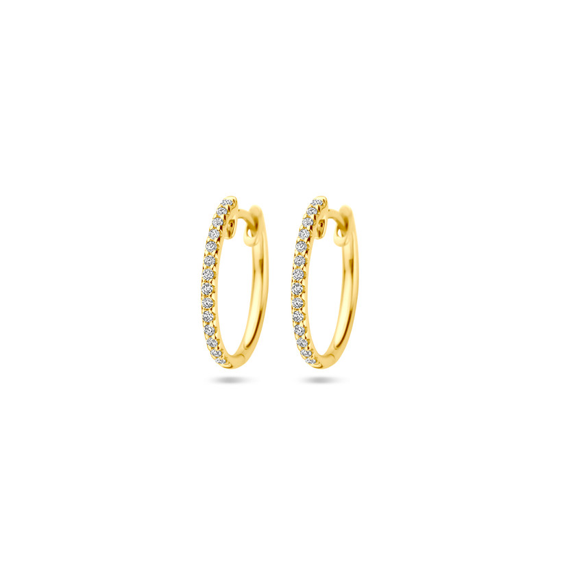 14k Geelgouden klapoorringen uitgevoerd met diamant. De klapoorringen hebben een buisdikte van 1.5mm.