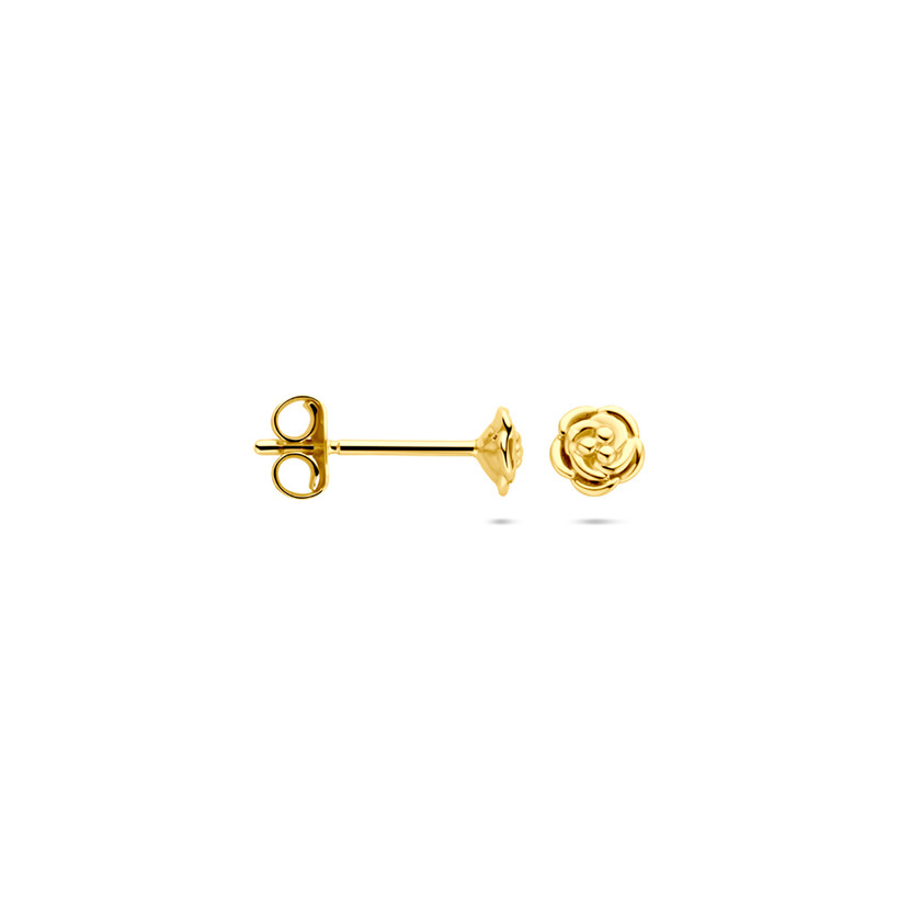 14k Geelgouden oorknoppen uitgevoerd met in de vorm van een bloem. De oorknoppen hebben een diameter van 4mm.