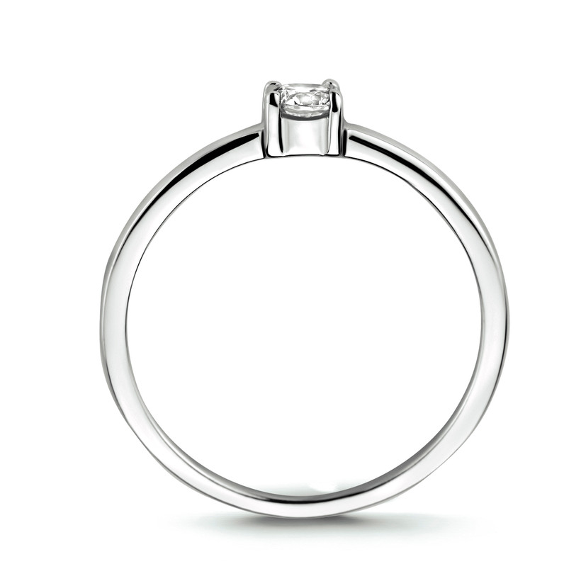 14k Witgouden ring uitgevoerd met een heldere zirkonia. De ring heeft een breedte van 3.5mm.