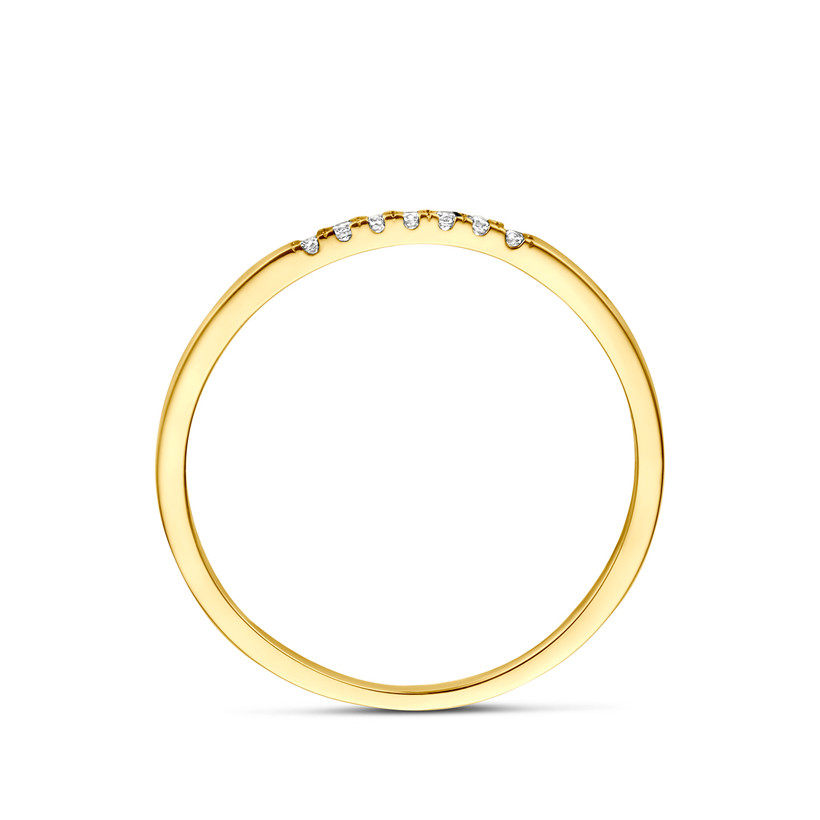 14k Geelgouden ring uitgevoerd met zirkonia. De ring heeft een breedte van 1.2mm.