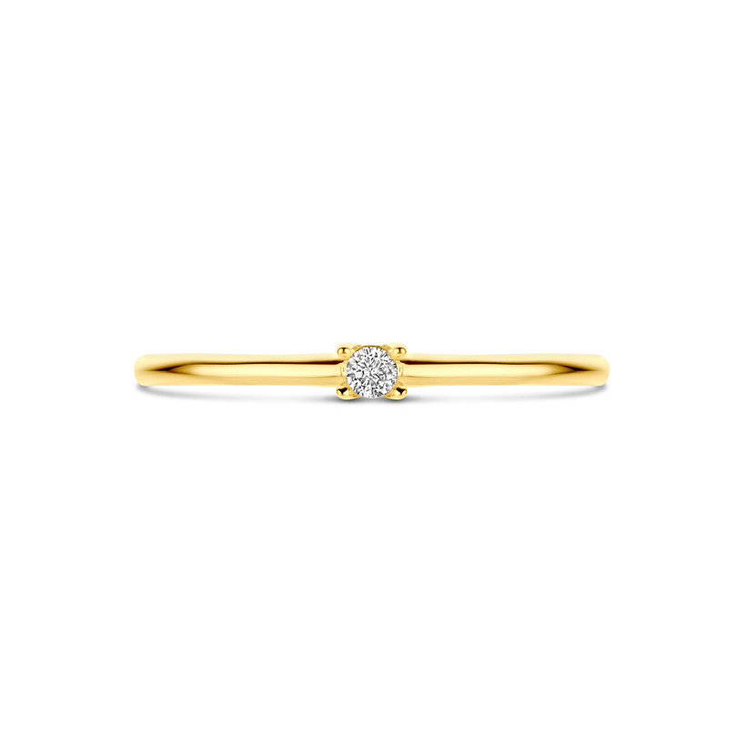 14k Geelgouden ring uitgevoerd met zirkonia. De ring heeft een breedte van 2mm.