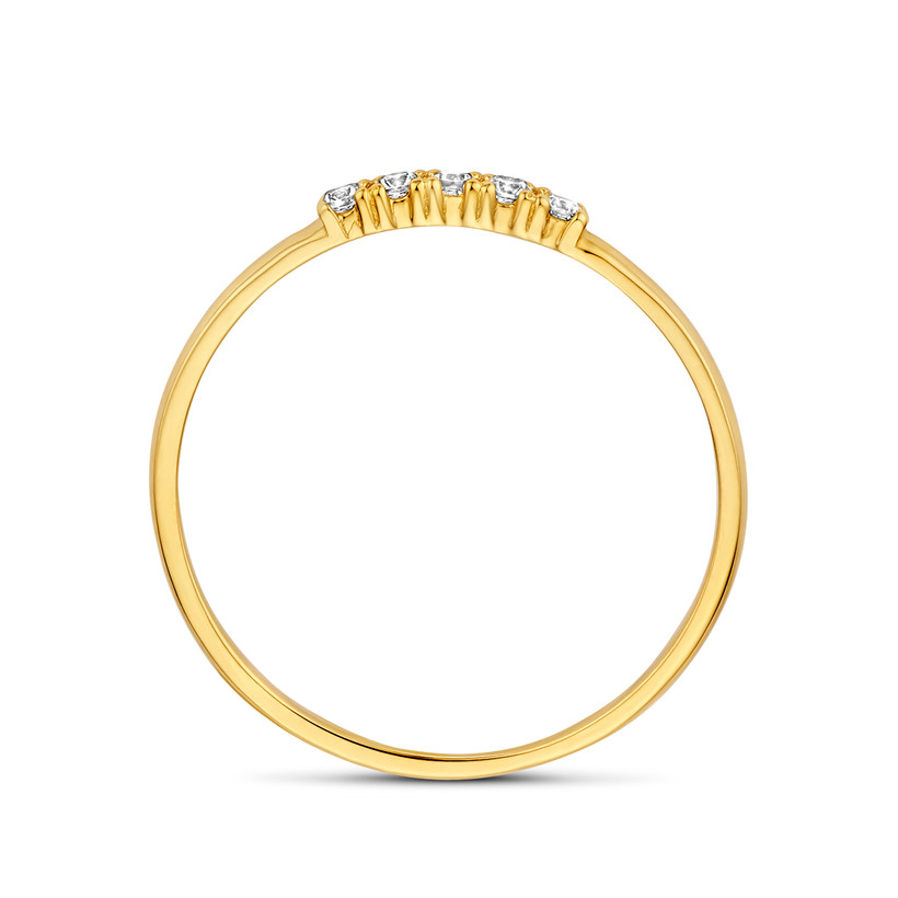 14k Geelgouden ring uitgevoerd met zirkonia. De ring heeft een breedte van 1.5mm.