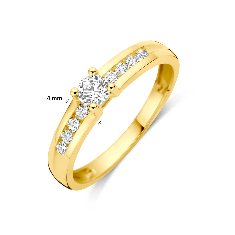14kGeelgouden ring uitgevoerd met zirkonia Dering heeft een breedte van 4mm.