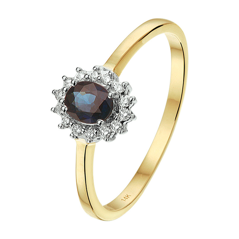 Sialia 42.08170 - 14K Ring Saffier & Dia. 0.10ct H Si Halo -