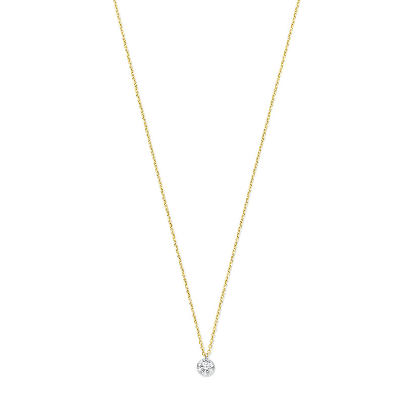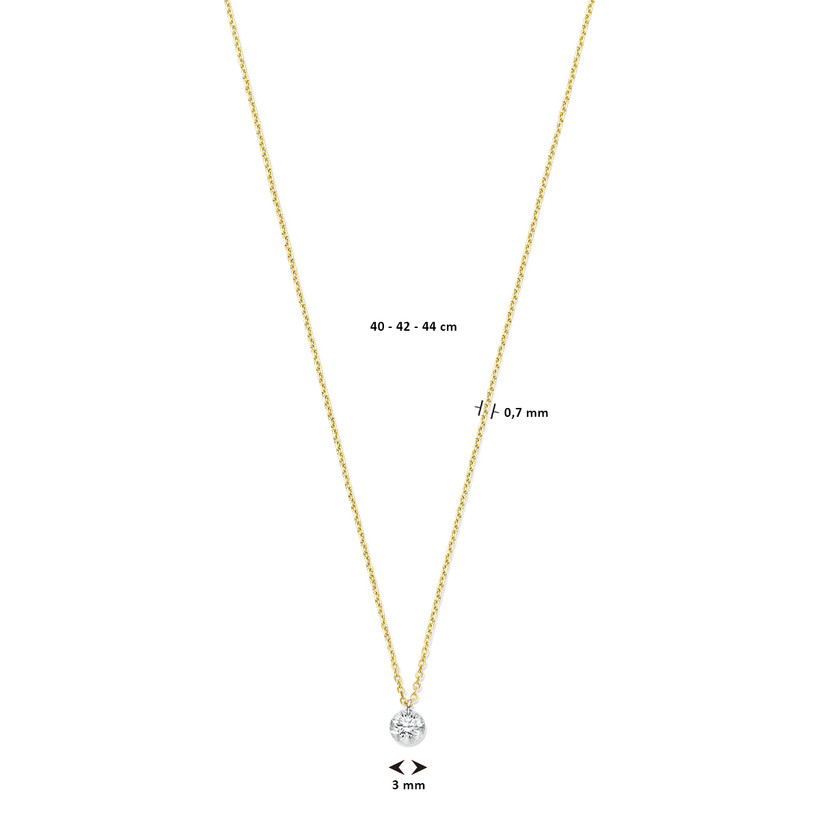 18k Geelgouden collier uitgevoerd met een diamant. De draaglengtes zijn 40, 42 en 44cm. De schakelbreedte is 0.7mm.