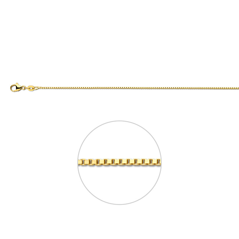 18k Geelgouden venetiaans collier uitgevoerd met een stevige karabijn sluiting. De schakelbreedte is 1.1mm.