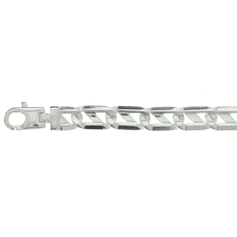 Zilveren lengte artikel met anker schakel. De schakelbreedte is 7.0mm.
