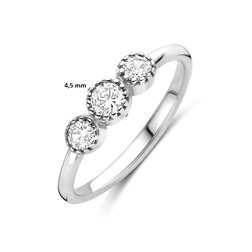 Gerhodineerd 925 zilveren ring uitgevoerd met zirkonia. De ring heeft een breedte van 4.5mm.