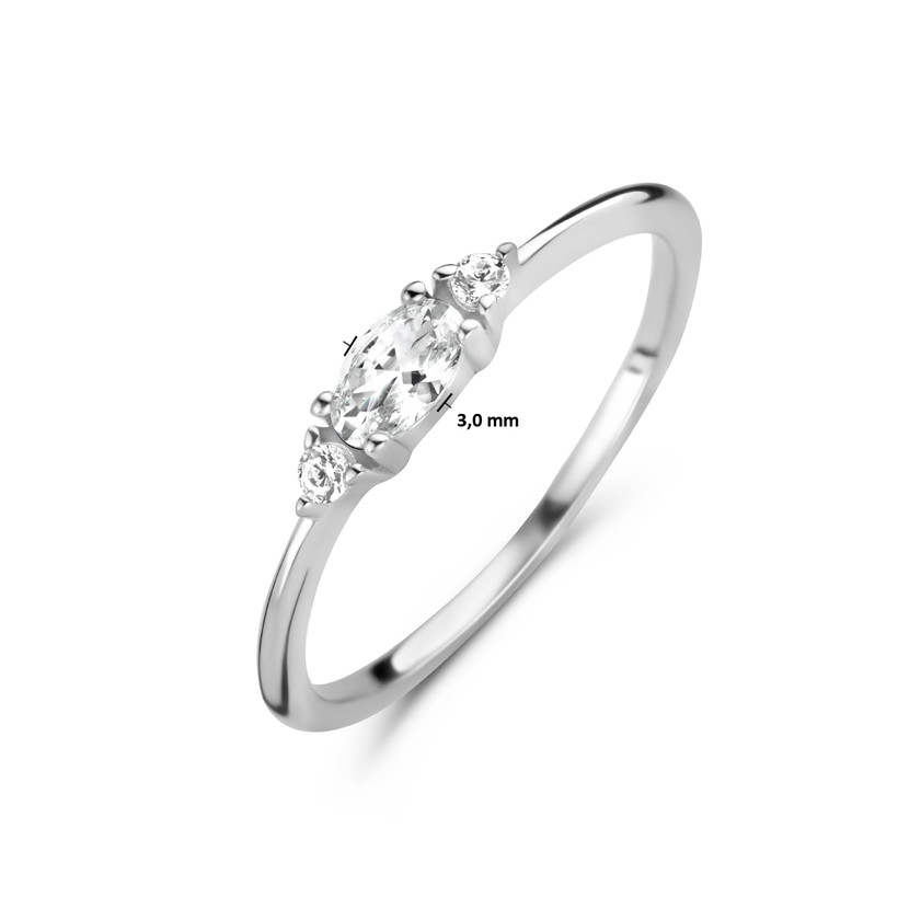 925 Gerhodineerd zilveren ring uitgevoerd met schitterende zirkonia. De ring heeft een breedte van 3.0mm.