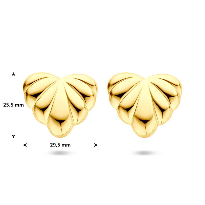 Stalen oorknoppen met een afmeting van 25x29mm. De oorknoppen hebben een geel gekleurde ion plating.